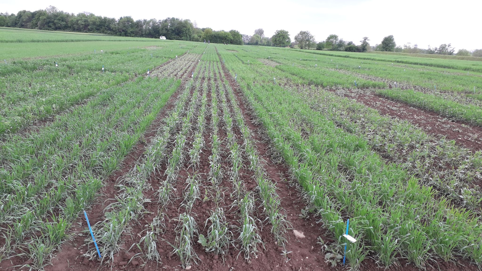 Intercropping has been proposed as a pathway for sustainable agriculture, with the potential to increase yields and product diversity, to stabilize yields, and to reduce fertilizer and pesticide use. Despite these benefits, however, adoption of intercropping is still low. One problem is the selection of suitable crop species and varieties and of appropriate sowing densities in order to find a competitive balance between component crops. Field trials for optimization of these parameters are either restricted to a low number of options to be tested, or create unmanageable amounts of time-consuming work. Technologies of digital agriculture, including the use of drones for obtaining high resolution imagery from the trials and machine learning for image processing may help to expand the number of partner combinations to be tested in field trials. As part of a larger research project (Phenorob), we set up field trials at a low input conventional and an organic site in 2020 with four replicates. Treatments included all possible monocultures and 1:1 intercropping mixture of twelve spring wheat (Triticum aestivum L.) entries (ten cultivars and two 5-component mixtures of these wheat cultivars), and two faba bean (Vicia faba L.) cultivars. All combinations were each sown in two sowing densities. The design resulted in a total number of 320 plots per site. Regular drone flights over both sites were combined with classical agronomic measurements to calibrate information obtained from the imagery. First results showed strong dependence of the mixture effect on the wheat cultivar.